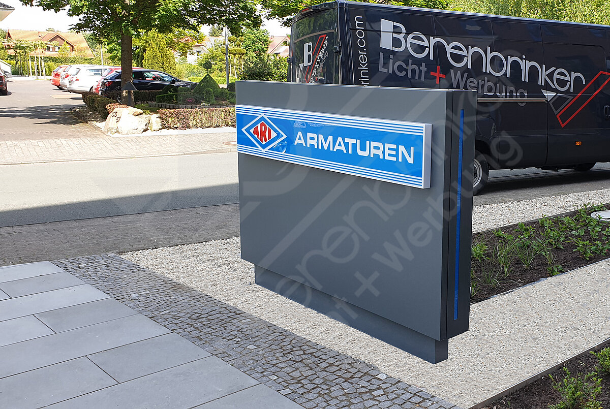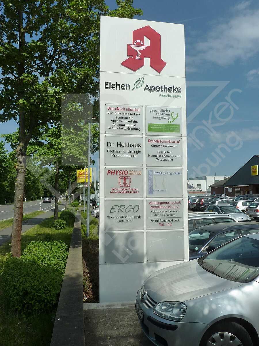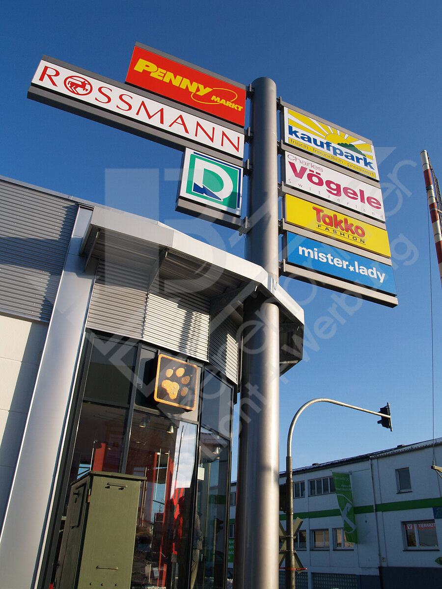 Stahlpylon mit 10 Werbekörpern aus Aluminium